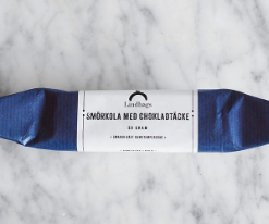 Kolastång smörkola med chokladtäcke: Socker, grädde, glykossirap, smör, kakaomassa, kakaosmör, vanilj, havssalt