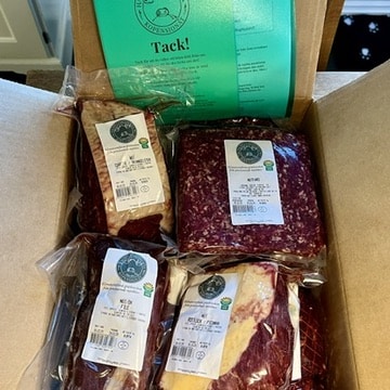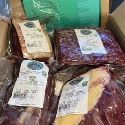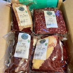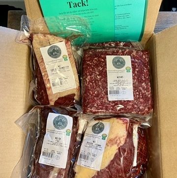 Cirka 10 kg kött (+/- 15 %) fördelat på ca. 6 kg hängmörade detaljer samt ca. 4 kg köttfärs.