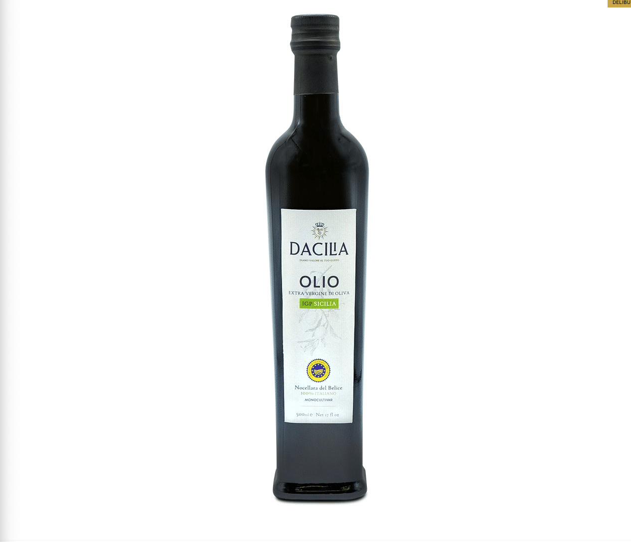 Dacilia Extra Virgin Olivolja Nocellara del Belice IGP är en högkvalitativ olivolja som är producerad av de finaste Nocellara del Belice-oliver som odlats på Sicilien. Oljan har uppnått den skyddade ursprungsbeteckningen (IGP) som garanterar att den har tillverkats enligt stränga kvalitetskrav och traditionella metoder.