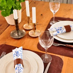 Fantastiskt fin bordstablett med tillhörande servettring – perfekt till dukningen. När den inte används är den enkel att rulla ihop och knäppa servettringen runt – supersmart för förvaringen!