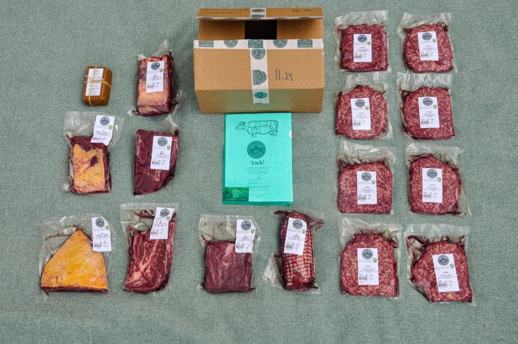 Och det bästa av allt? Genom att köpa en köttlåda hos oss får du möjligheten att prova på hela bredden – från de lyxiga detaljerna till färsen som är basen i vardagsmaten. Det är ett enkelt sätt att upptäcka nya favoriter, lära känna olika tillagningsmetoder och låta hela djurets smakrikedom komma till sin rätt.